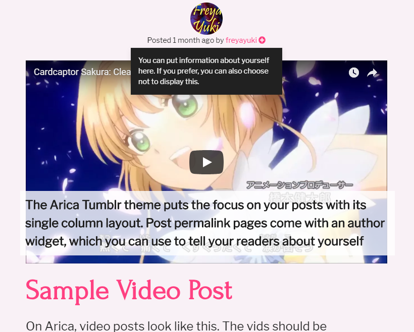 Check out the demo blog (https://arica-theme.tumblr.com/) to see what the theme looks like. It also includes theme documentation and tutorials.